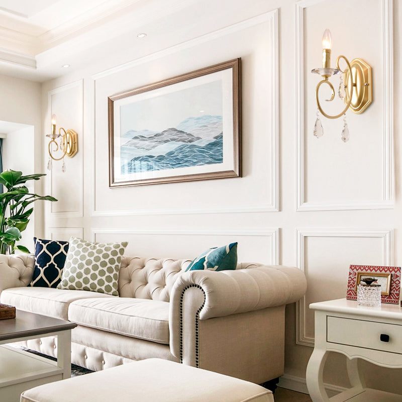 Modern Metal Wall Lamp - Elegant 1-Light Candle Sconce with Clear Crystal Deco in Gold for Corridor