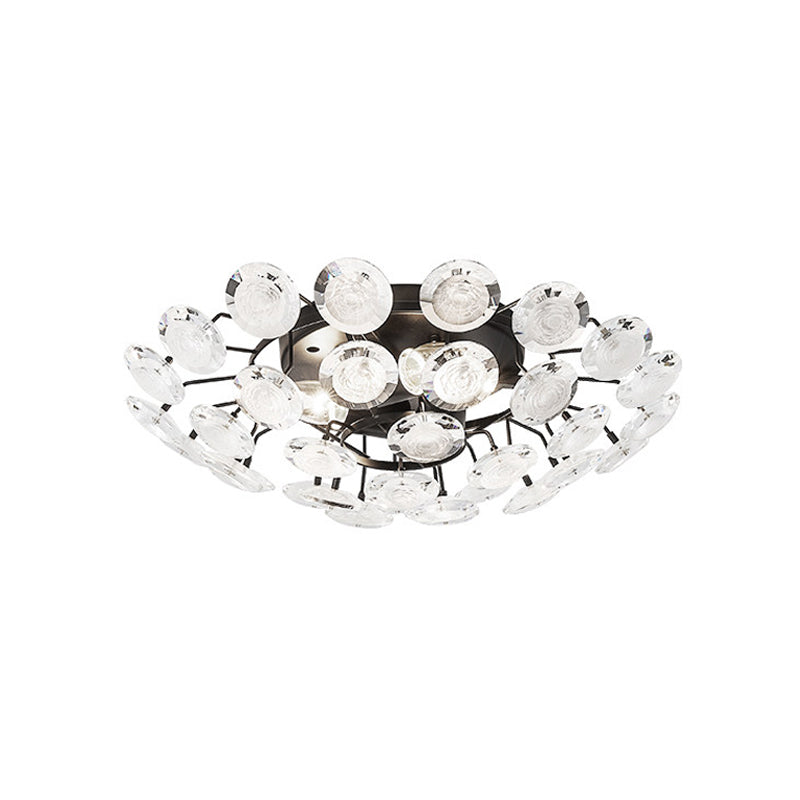 Modern Sputnik Crystal Semi Flush Dining Room Ceiling Lamp - 4 Bulbs Black