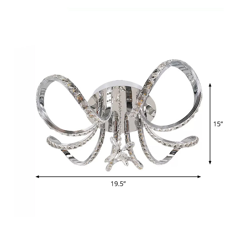 This Nickel LED Curved Hoop Ceiling Lighting Simple Faceted Crystal Semi Flush Mount in Warm/White Light is a modern piece of decor that will add style and illumination to any room. This stunning semi-flush mount has a size of 19 to 20 inches, a 19.5 inch width and a 15 inch height. It is also equipped with a 110V-120V and 220V-240V voltage, a SMD bulb base, a LED light type, and comes in a variety of color temperatures. The warm white light emitted from this fixture is a great way to add the perfect amount of ambience to any atmosphere. The body of this piece is made with top quality crystal material with a nickel finish which is sure to make a noticeable addition to any interior design. Not only is this light visually appealing, but it is also a perfect way to light up any area with its bright and efficient illumination. This light is sure to make a statement wherever it is placed and is perfect for modern and traditional settings alike.