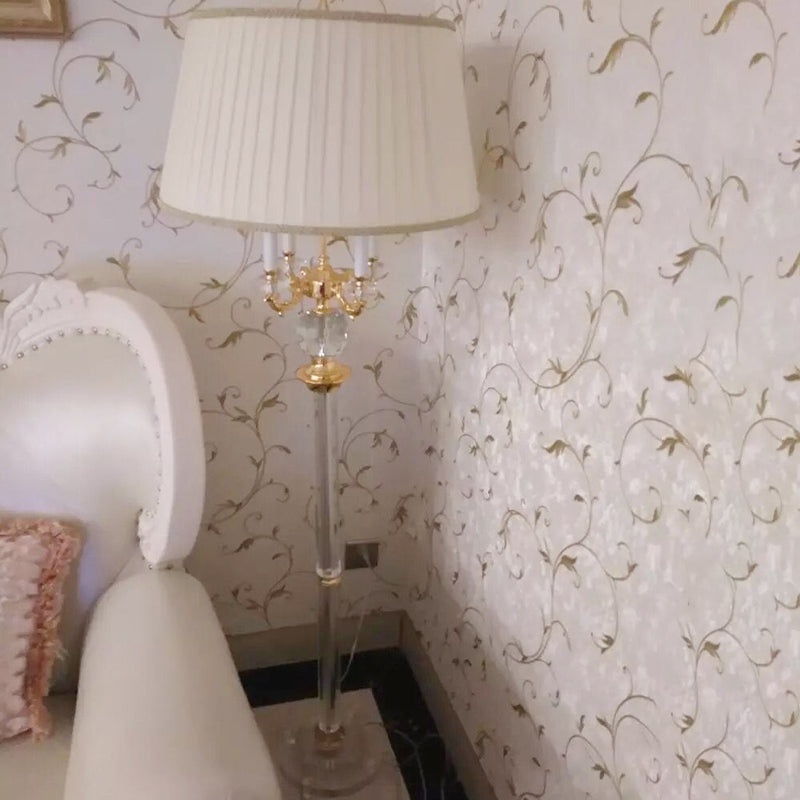 Gold Nordic Candle Floor Lamp with Crystal Single Bulb & Beige Fabric Shade