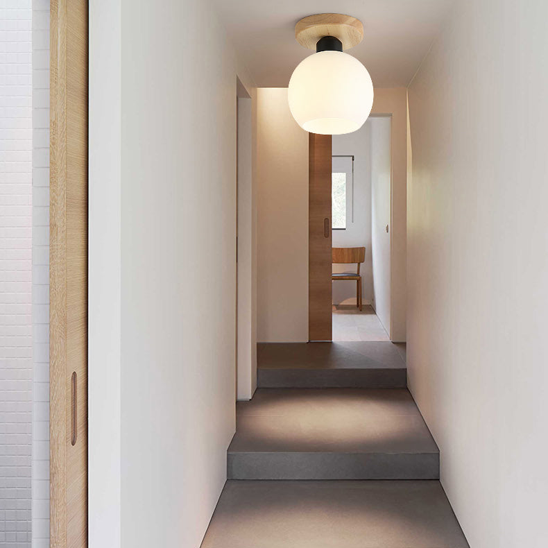 Industrial Globe/Cylinder Frosted Glass Semi Flush Mount Light in Black for Foyer - Single Bulb Ceiling Lighting