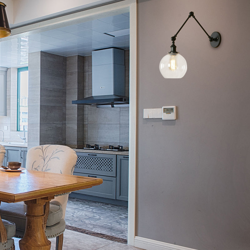 Industrial Bedroom Wall Sconce Lighting Fixture with Clear Glass Globe Shade - Black/Antique Brass/Rust