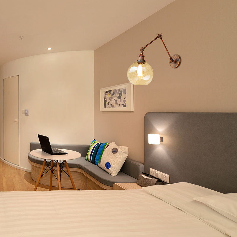 This stylish and modern wall light is a perfect choice to bring an industrial touch to any interior space. The One Bulb Wall Light with Globe Shade boasts a sleek and classic design with a beautiful Antique Brass Rust Black finish that makes it perfect for any room. The size of the fixture is adjustable, ranging from 5 to 9 Inch and the Backplate Width is 5" 4". It has a total Height of 7" and comes with a 8" globe shade. The arm length is 8"+8" and it includes a light base of E26/E27, which is perfect for LED, incandescent, or fluorescent bulbs (Bulb not included). The light is part of an industrial-style collection and comes with a unique feature, a shade which adds further character to the style of this wall sconce. The power source is Direct Wired Electric, the voltage being 220V-240V 110V-120V, and the fixture type is swing-arm. Lastly, the material of both the shade and the light is glass, giving a unique touch of elegance. This is sure to be a great addition to any home.