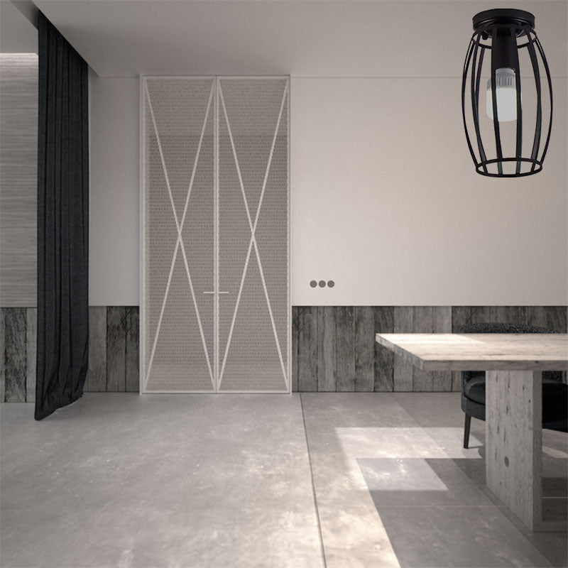 Industrial Style Ceiling Mounted Light with Oval Cage Metallic Shade - 1 Head Bedroom Flush Mount Fixture in Black
