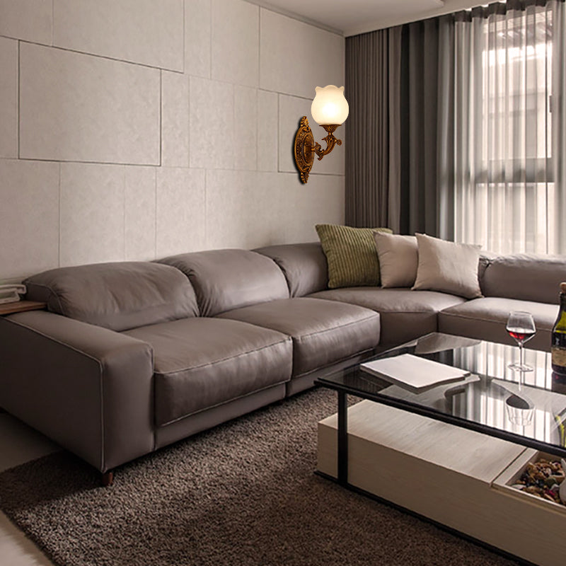 Stylish Petal Milk Glass Wall Light Sconce with 1 Bulb - Traditional Bedroom Wall Mount in Gold