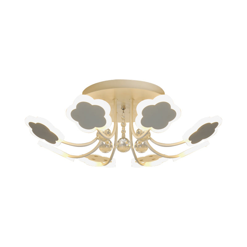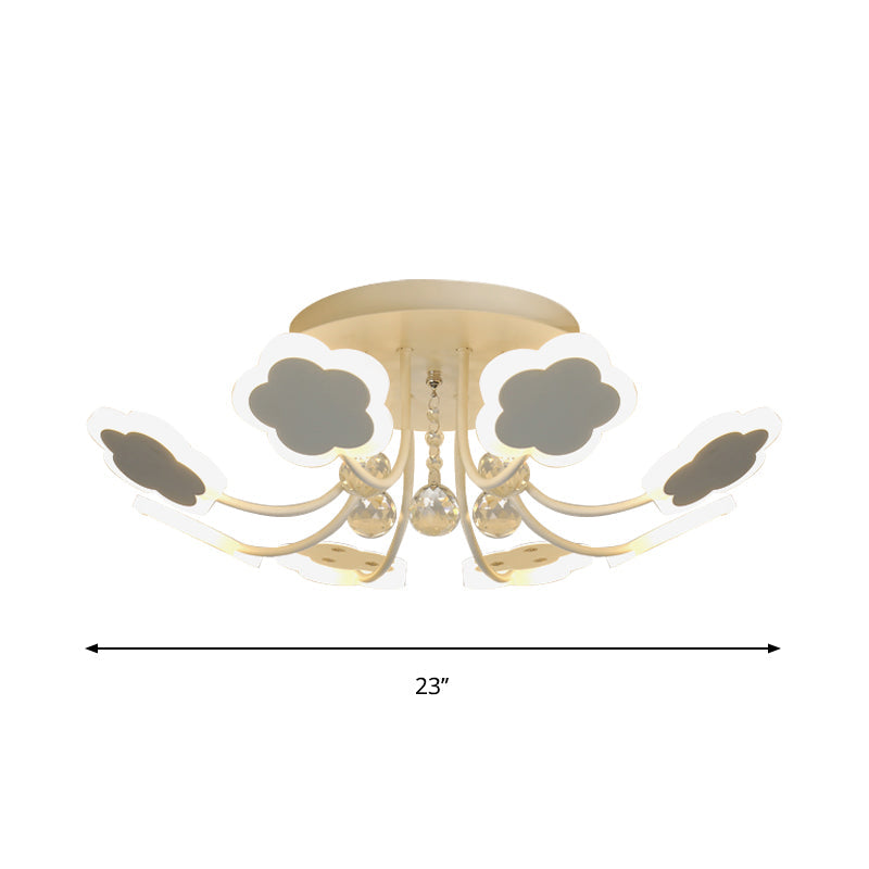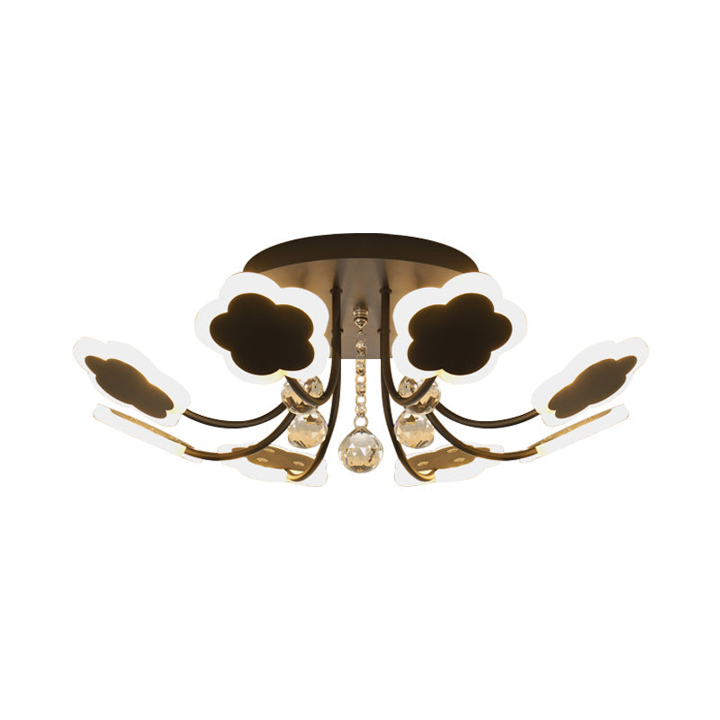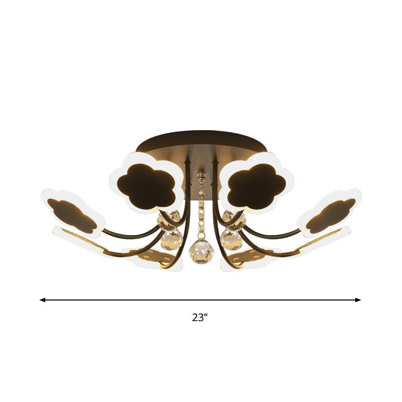 Semi-Mount Petal-Shaped Acrylic Led Ceiling Lamp With Crystal Draping - Black/White 23/27 Width