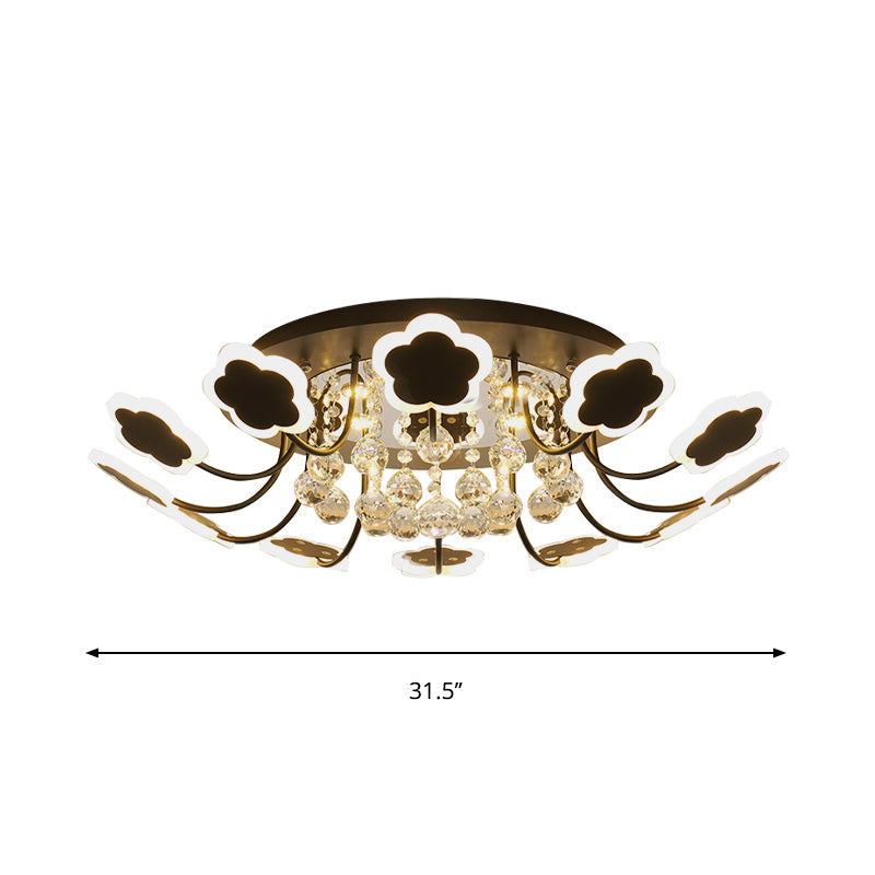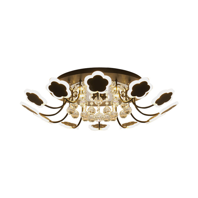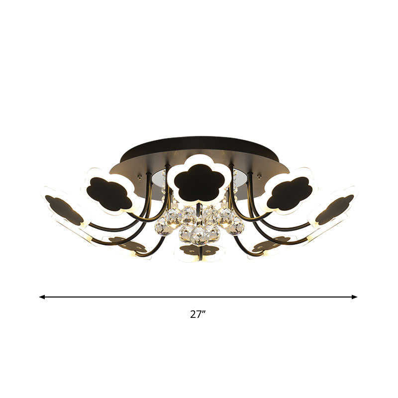 Semi-Mount Petal-Shaped Acrylic LED Ceiling Lamp with Crystal Draping - Black/White, 23"/27" Width, Warm/White Light