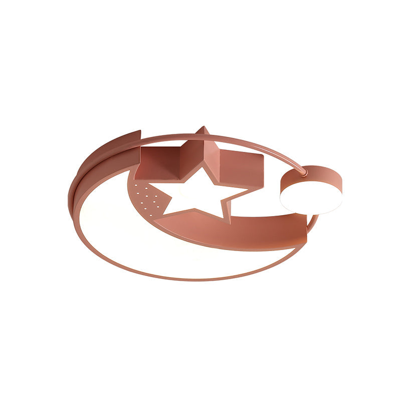 Nordic Led Moon And Star Ceiling Light In Pink Finish - Perfect For Girls’ Bedrooms