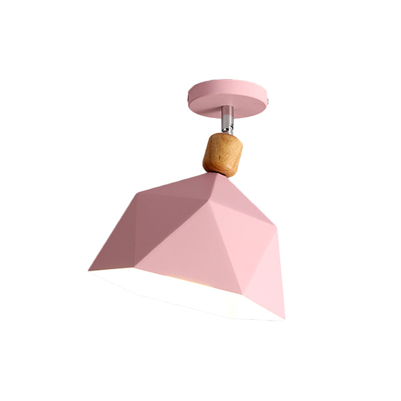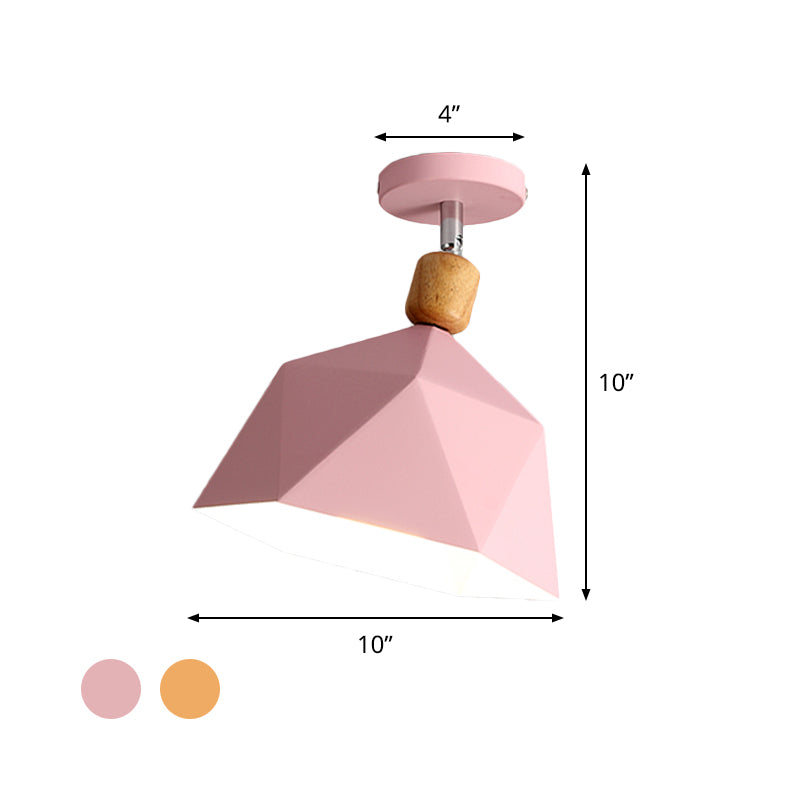 Shade Faceted Dome Ceiling Light Fixture - Macaron Metal Semi-Flush Mount for Apartments - Pink/Gold-Wood