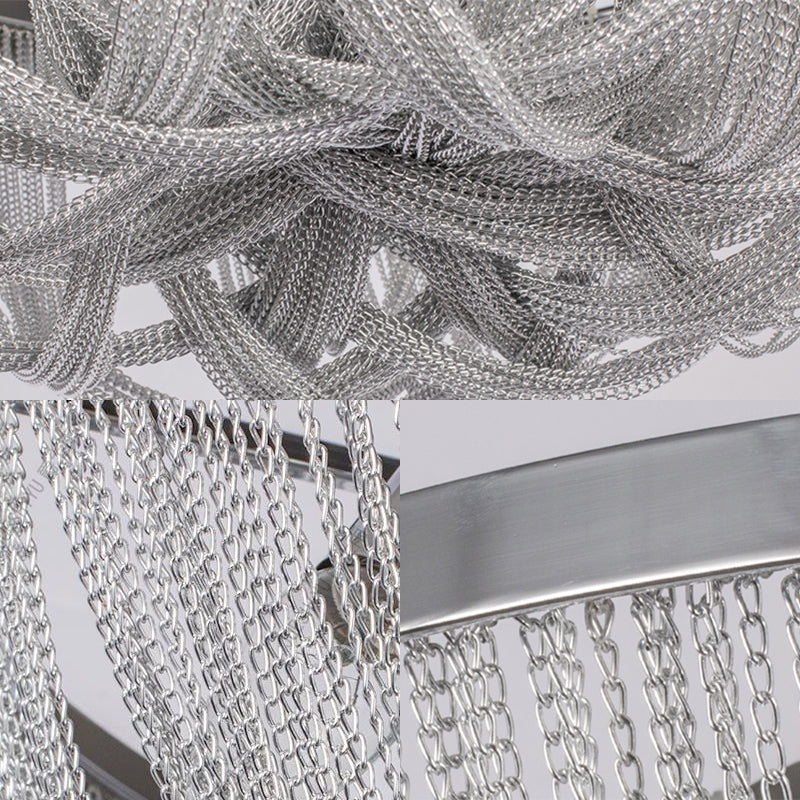 Postmodern Tassel Flush Mount Ceiling Fixture with Metal Frame, 4/5 Lights, Chrome Finish - Ideal for Living Room - 16"/19.5" Wide