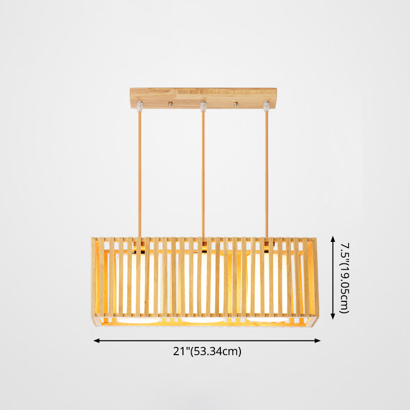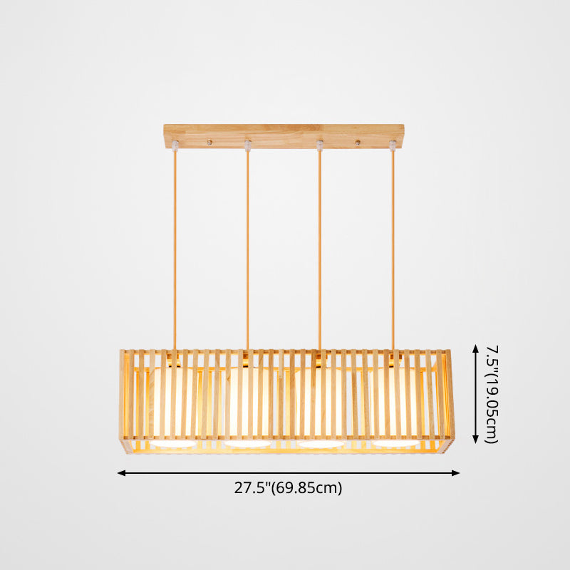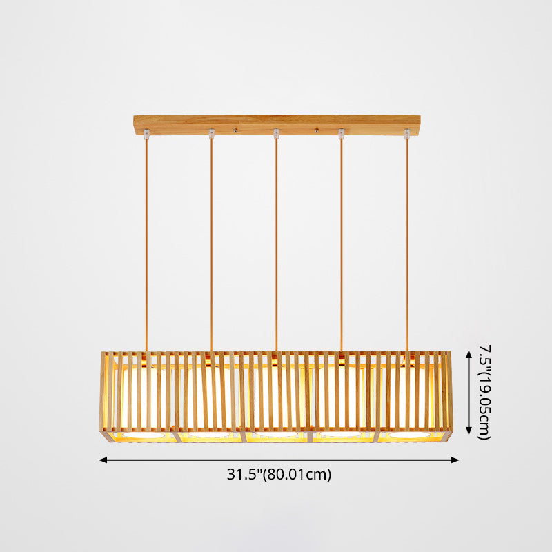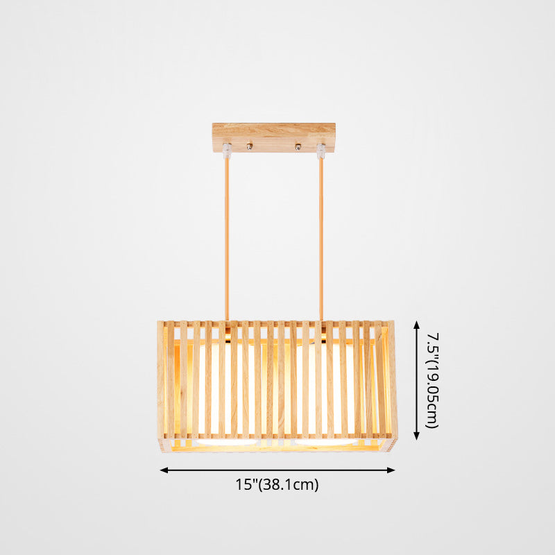 Asian Wood Island Pendant Light - Natural Wood Finish