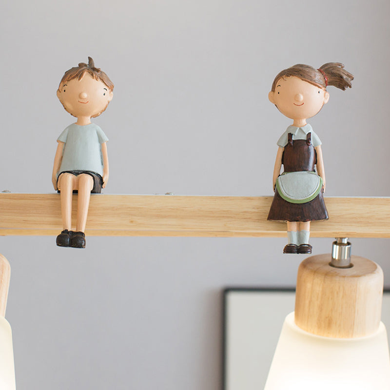 Modern Natural Wood Rectangle Island Pendant Light / Couple
