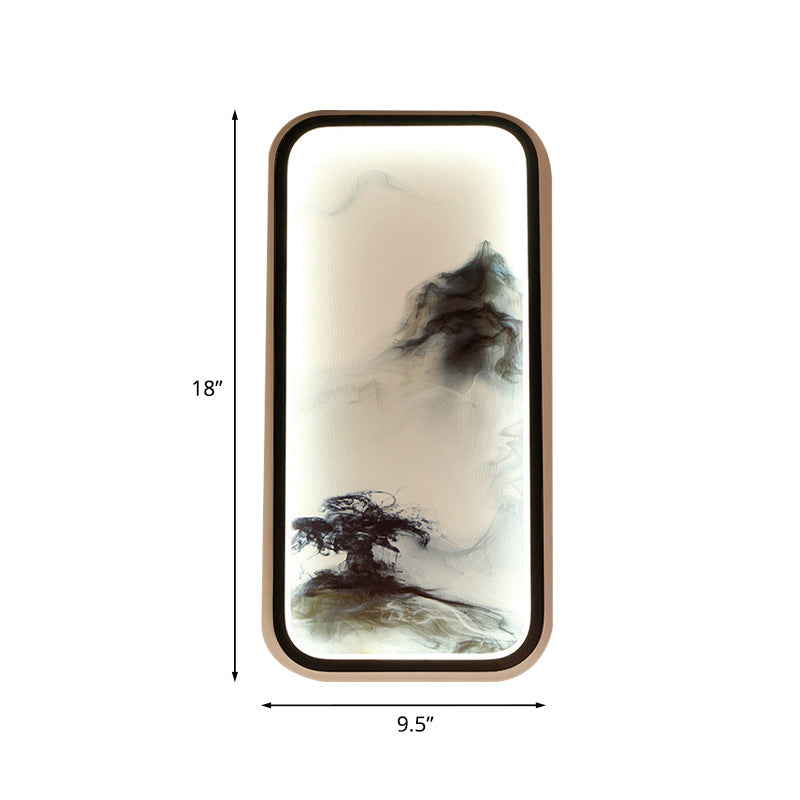 Rectangular Mountain Wall Mount Led Light - Oriental Metallic Black Lamp For Living Room / A
