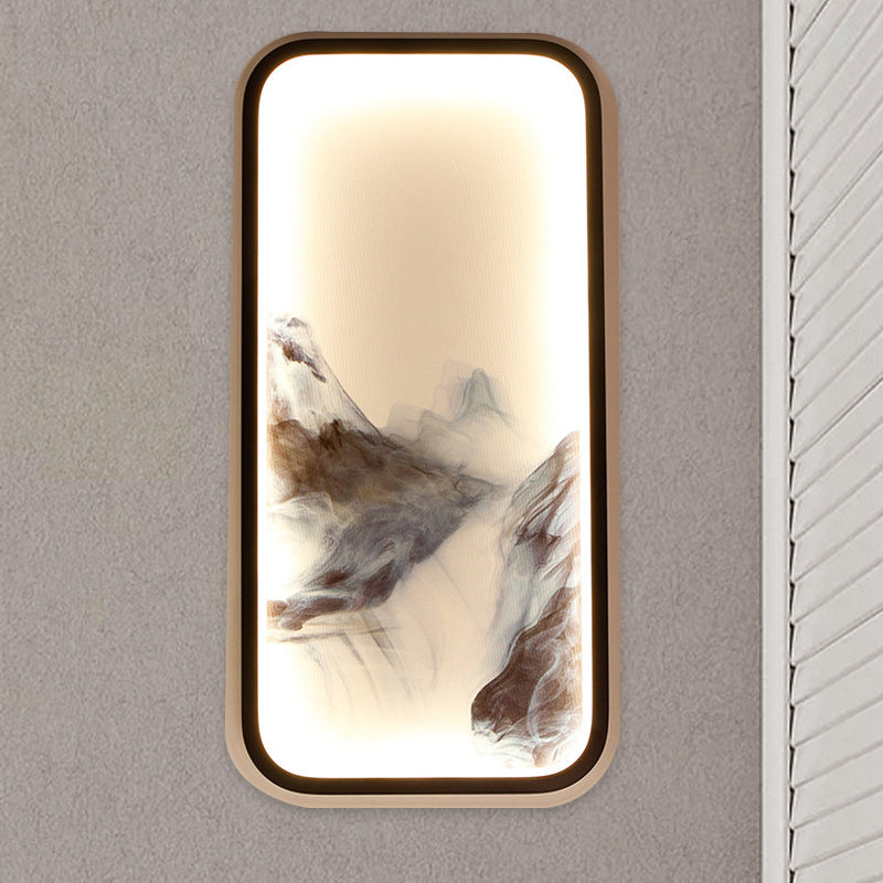Rectangular Mountain Wall Mount LED Light - Oriental Metallic Black Lamp for Living Room