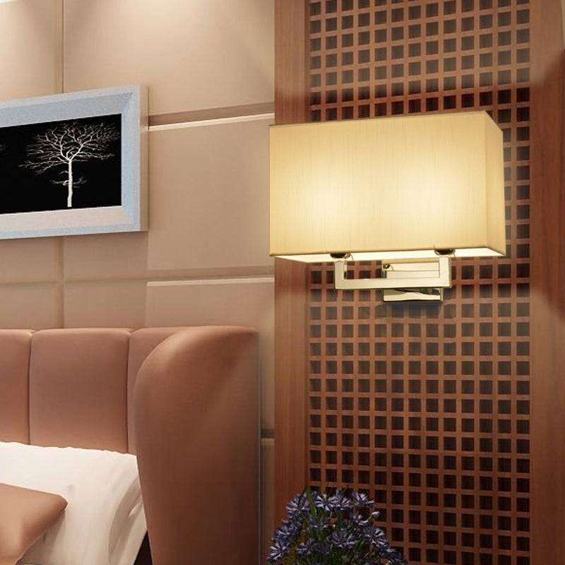 Modern Chrome 2-Light Rectangular Fabric Wall Lamp