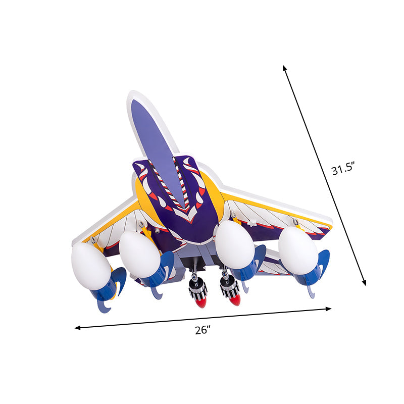 This stylish and eye-catching Rocket Children Room Semi Flush Lamp is the perfect way to light up your kids' bedrooms and their imaginations! The fun cartoon-style design and sleek, metallic finish lend it a modern, cool look, making it the perfect accent piece for any children's room. The light fixture features a semi-flush mount, meaning it fits flush to the ceiling, and comes complete with four energy-efficient LED, Incandescent, or Fluorescent bulbs (E12/E14+SMD bases). It's size is greater than 25 inches, with length at 31.5 inches, fixture width at 26 inches, and fixture height at 8 inches. Its frame material is made of metal, with a vibrant blue color that will add a fun touch to any room. With its cheerful design, this Rocket Children Room Semi Flush Lamp is sure to bring joy to any space and be a favorite among children and adults alike. Plus, with an included voltage range of 220V-240V 110V-120V, this piece can be used both domestically and internationally. Light up your kids' room and spread some inspirational starlight with this amazing Rocket Children Room Semi Flush Lamp!