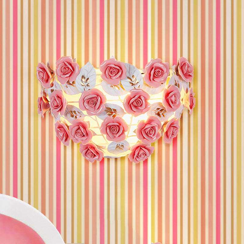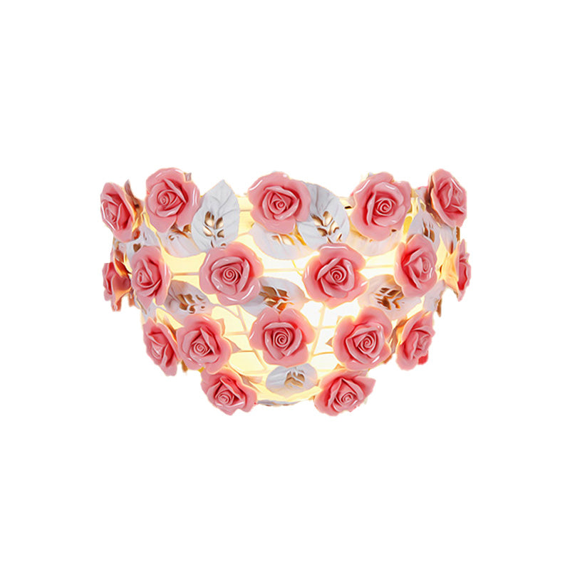 Metal Countryside Rose Wall Sconce Light - Pink 1-Light Bathroom Lighting Fixture