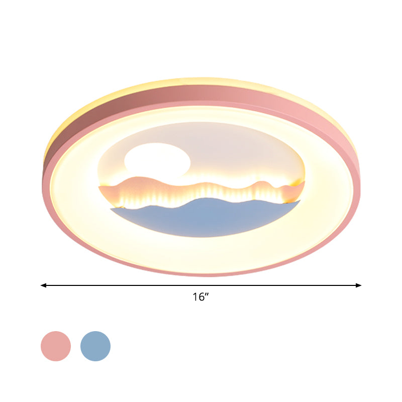 Sunset Round Acrylic Flush Light Fixture with Nordic LED Pink/Blue Flush Mount for Child's Bedroom