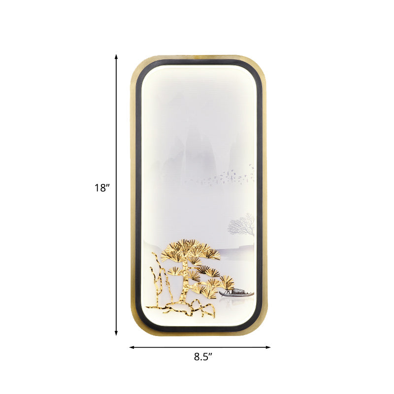 Chinese-Style Led Pine Tree Wall Mural Lights For A Rustic Guest Room Gold / Rectangle