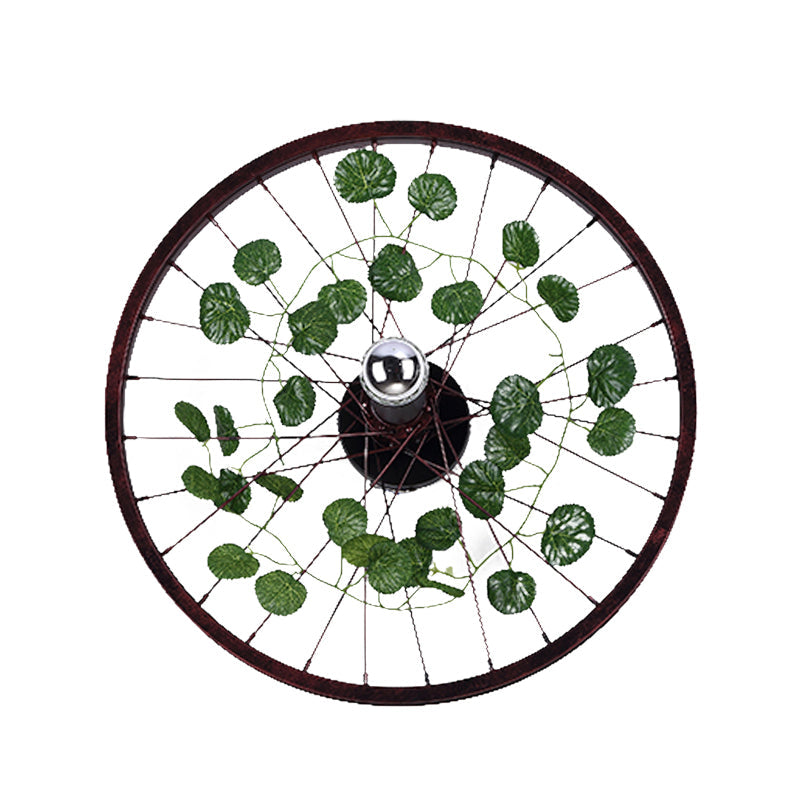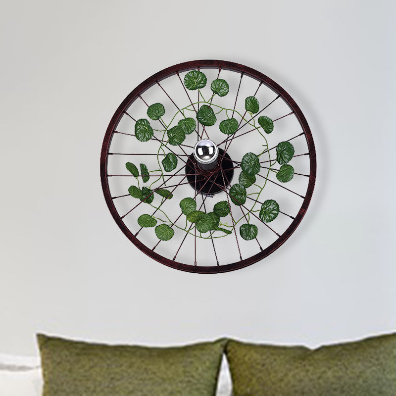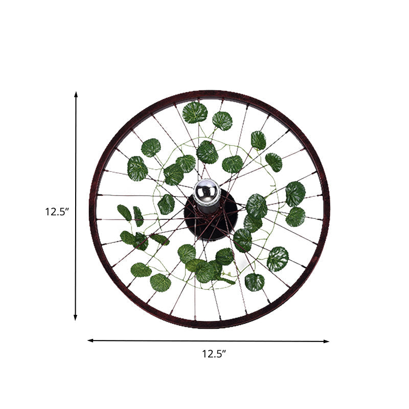 Industrial Rust Wheel Sconce Light Fixture - Metal Bulb Restaurant Led Plant Wall Mount Lamp
