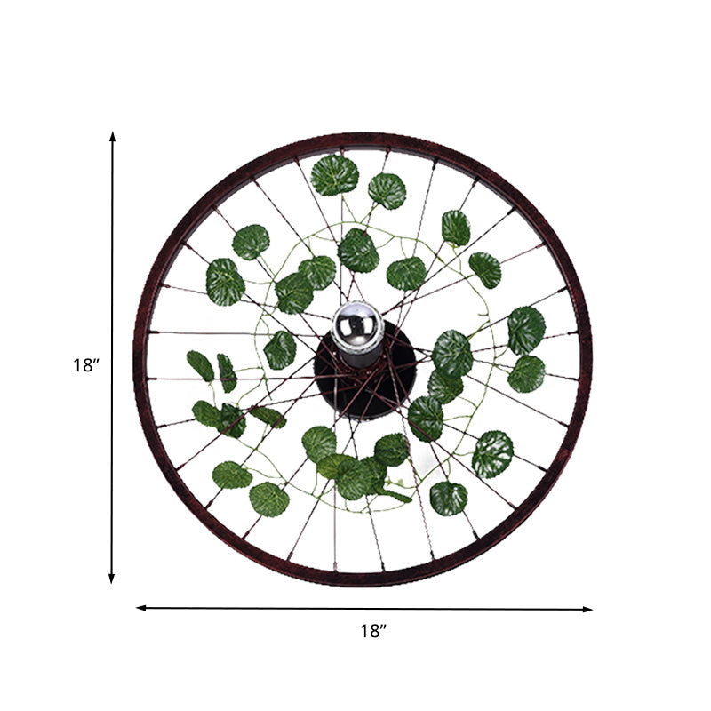 Industrial Rust Wheel Sconce Light Fixture - Metal Bulb Restaurant LED Plant Wall Mount Lamp, 12.5"/18"/21.5" Dia