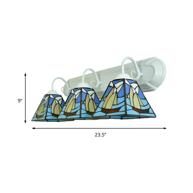 Nautical Stained Glass Sailboat Sconce: White Finish Wall Mount with 3 Heads