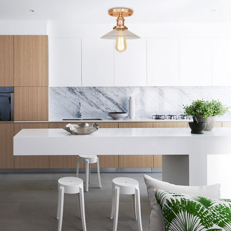 This stunning "Saucer Frosted Glass Semi Flush Lighting Vintage 1 Bulb Kitchen Light Fixture in Black/Brass/Copper" is a perfect addition to your home. Ideal for any style kitchen, entryway, or hallway, this beautiful light fixture will brighten up your indoor living space with its vintage style and design.