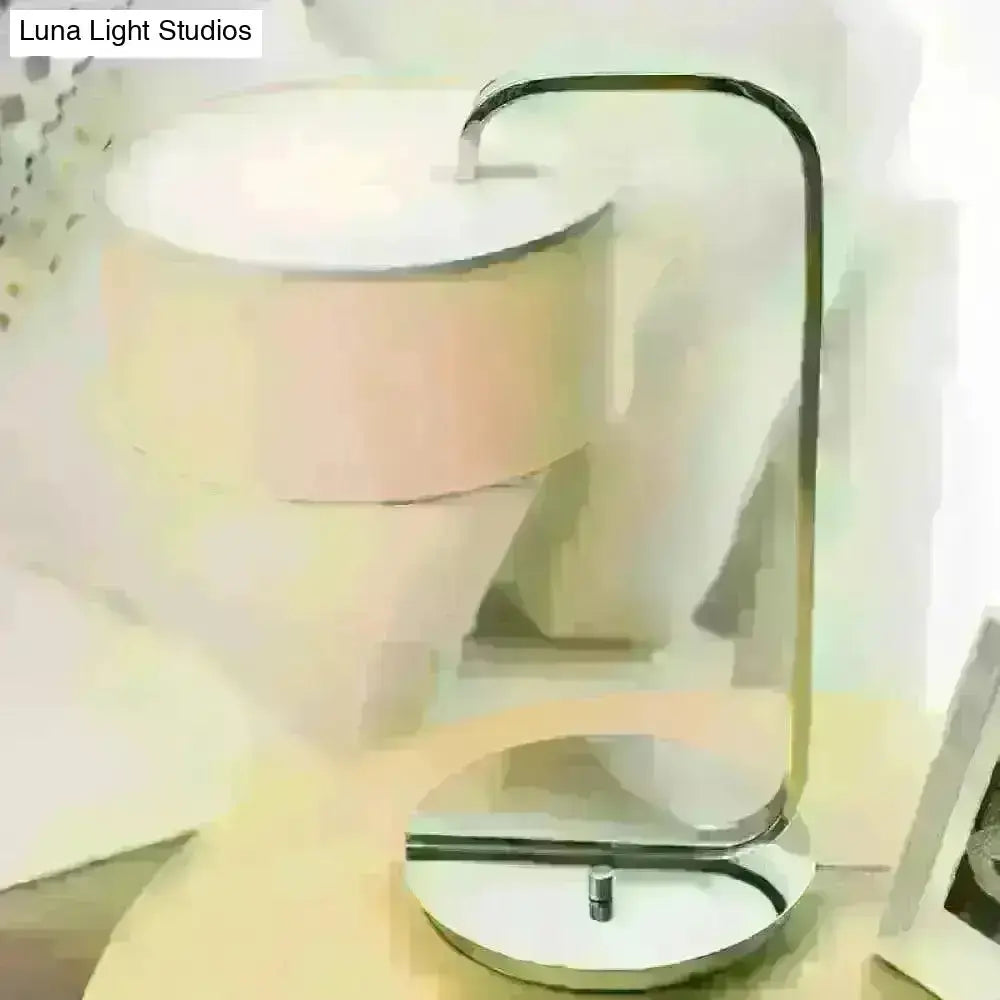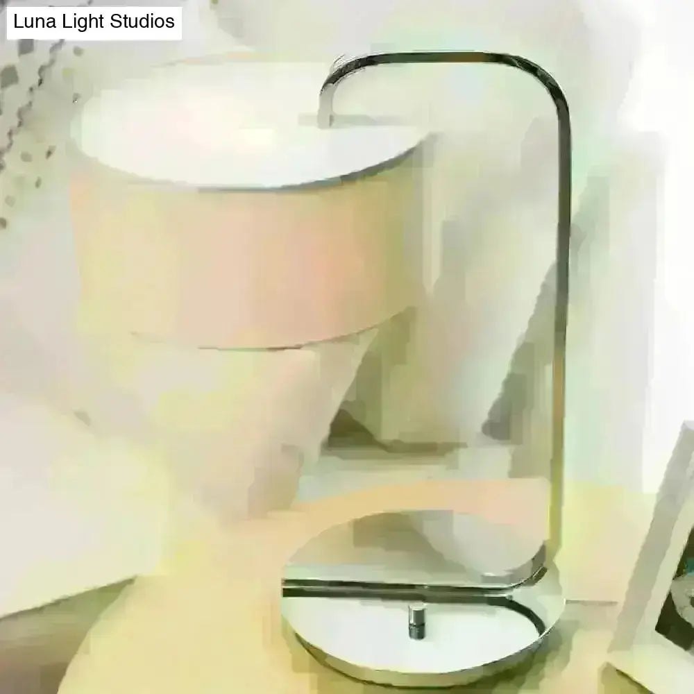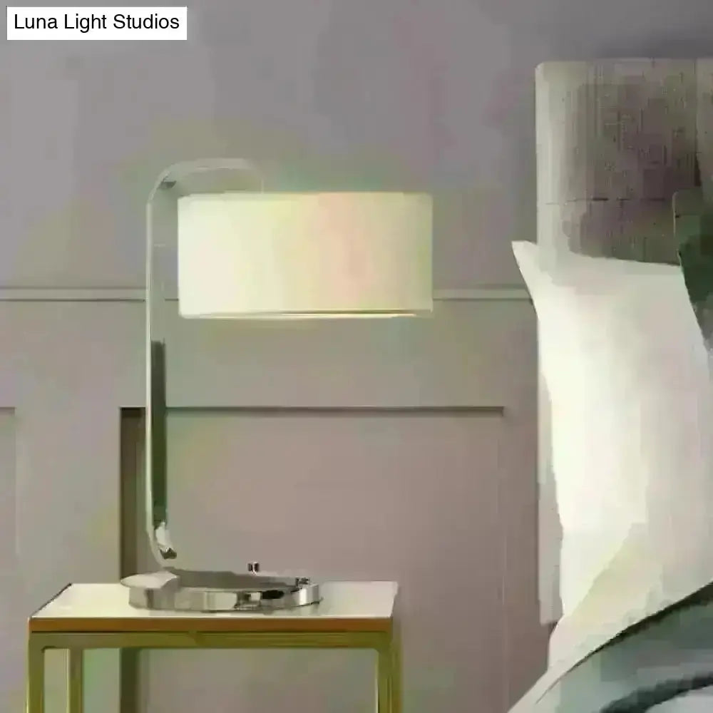 Hailey - Simplicity 1-Bulb Nightstand Light Black/White Cylinder Night Table Lamp With Fabric Shade
