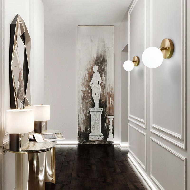 Rotatable Glass Wall Sconce - Small And Stylish Postmodern Brass Light / Globe