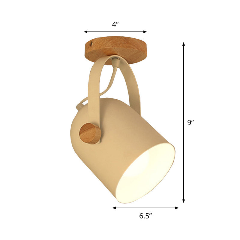 Nordic Metal 1-Light White Ceiling Fixture - Small Elongated Dome Semi Mount Lighting with Adjustable Handle