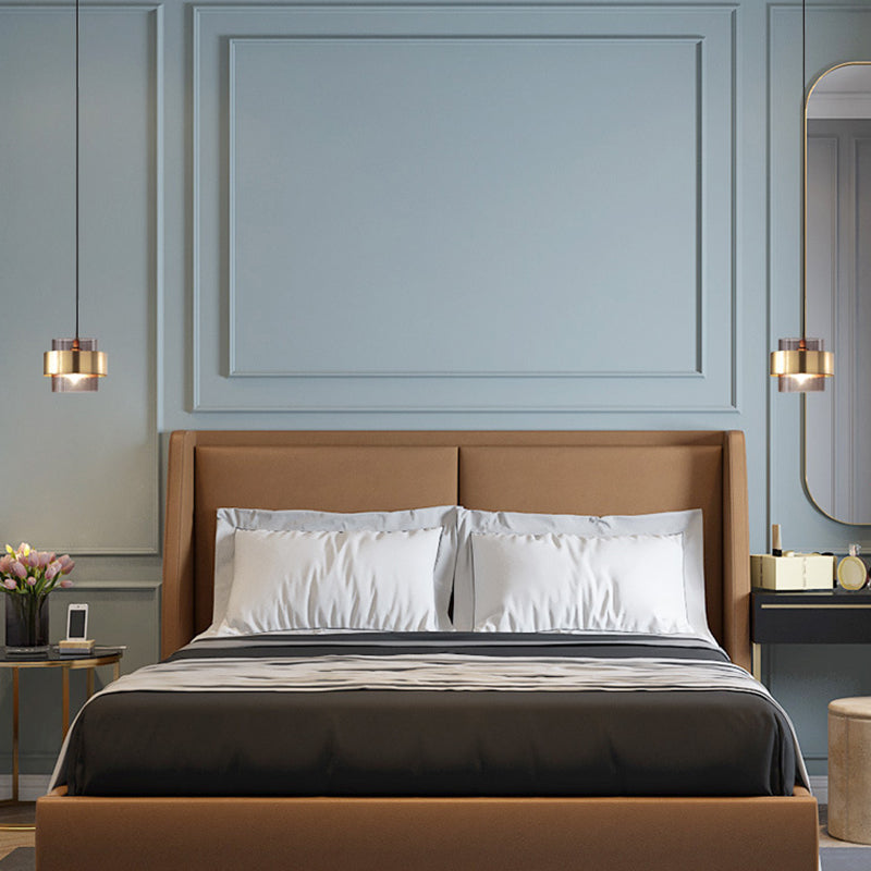 Modern Smoke Glass Pendant Light With Metal Ring - Cylindrical Minimalist Design Gold