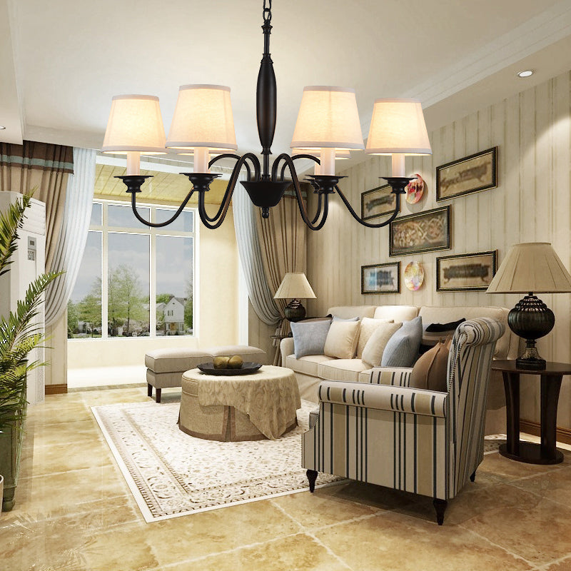 Modernist Sputnik Metal Chandelier With Cone Fabric Shade - 6/8 Heads Black 6 /