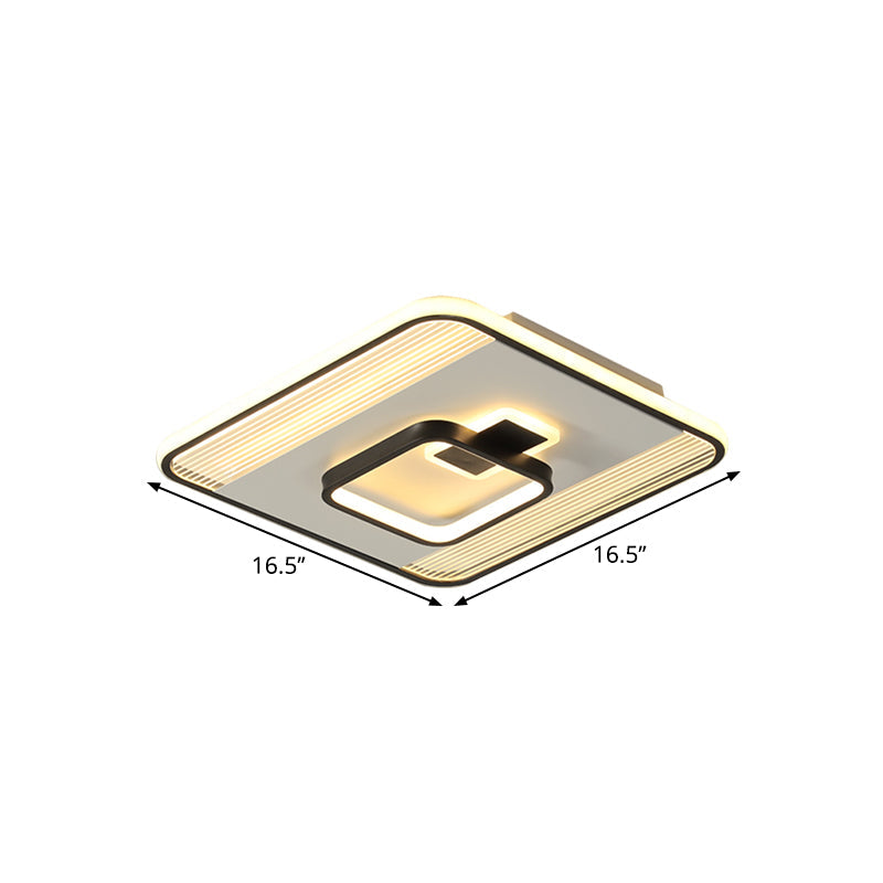 Black Square Flush Mount Led Ceiling Light Modern Acrylic Lamp 16.5’/20.5’ Width / 16.5’