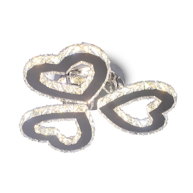 Minimalist Crystal LED Ceiling Light for Bedroom - Heart Shaped Semi Flush, Stainless Steel Finish