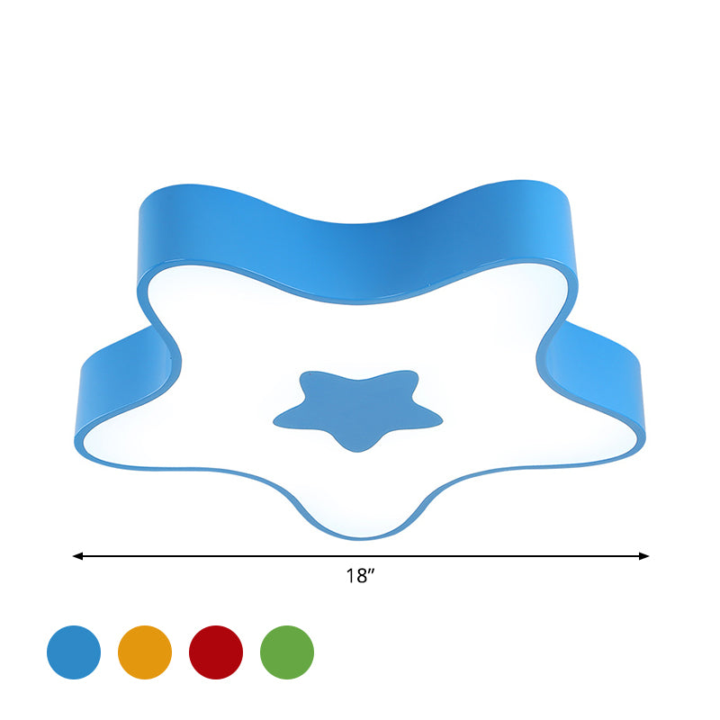 Led Kids Flush Mount Lighting - Star Kindergarten Acrylic Light In Red/Yellow/Blue Blue