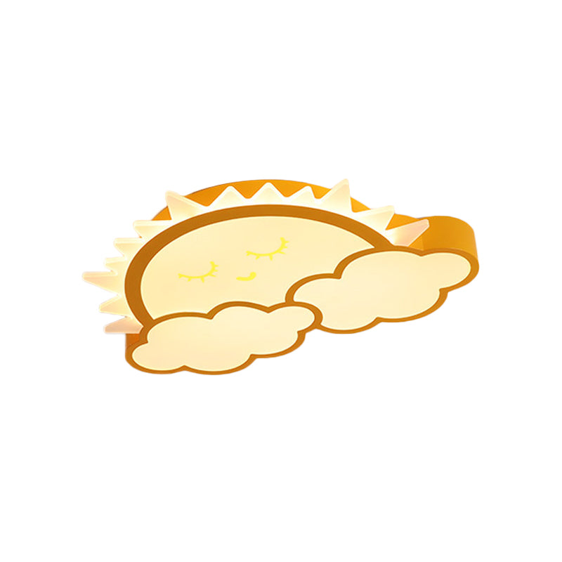 Sun & Cloud LED Ceiling Flush Light Fixture for Kids Room in Yellow/Blue/Pink