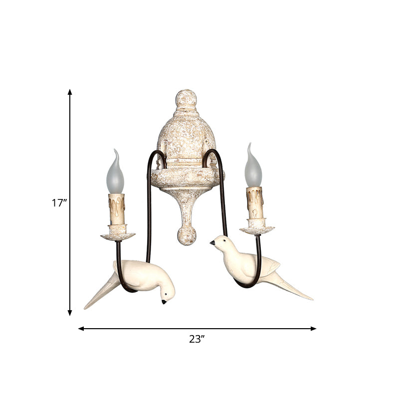 Rustic Wood Swooping Arm Wall Lamp with Distressed White Sconce - Decorative Candle and Bird Accents for Living Room