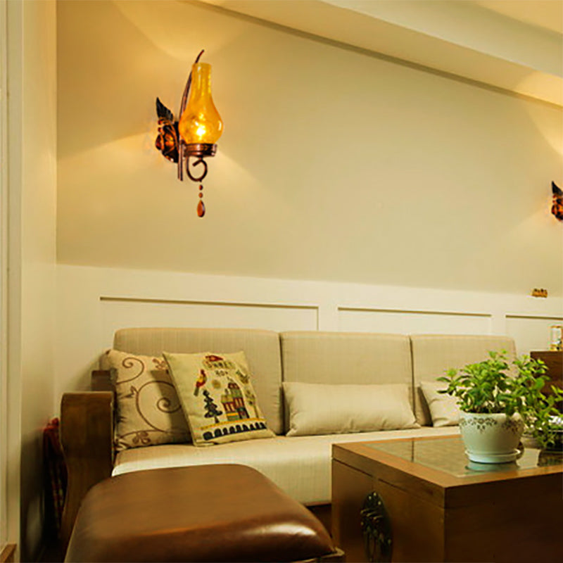This breathtaking Traditional Vase Wall Mount Light is a stunning combination of classic elegance and modern beauty. Crafted from high-quality yellow cracked glass and orange crystal deco, this wall mounted light features an eye-catching design that will add a remarkable touch to your indoor space.
