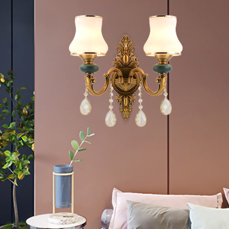Nordic Living Room White Glass Wall Mount Vase Sconce Light Fixture - 1/2 Head Brass Design 1 /