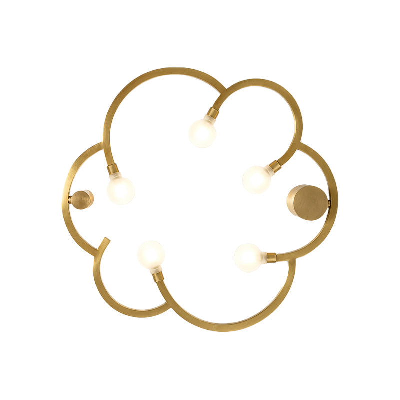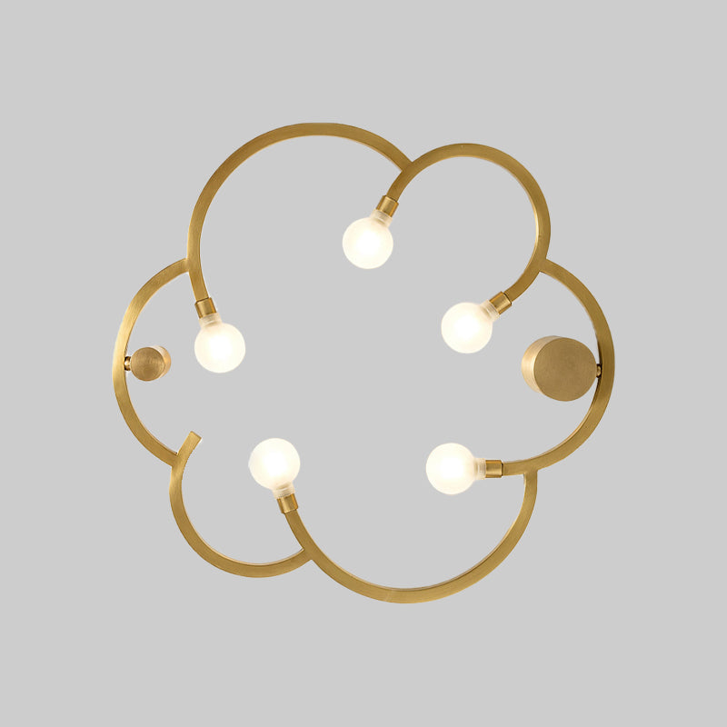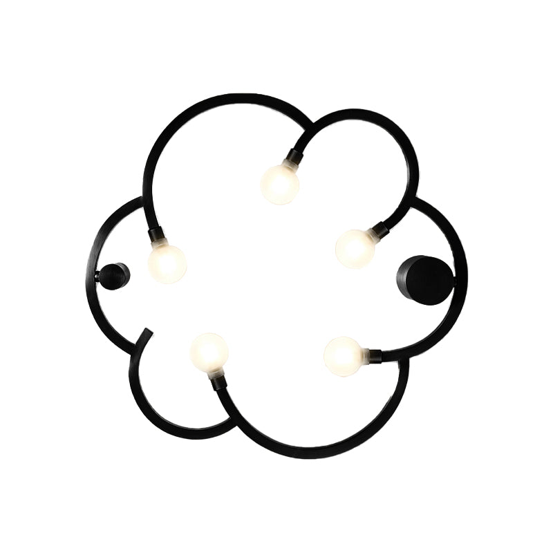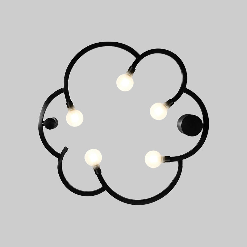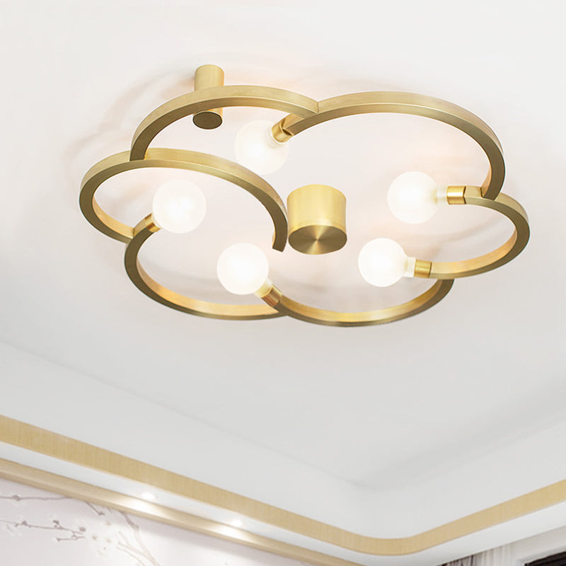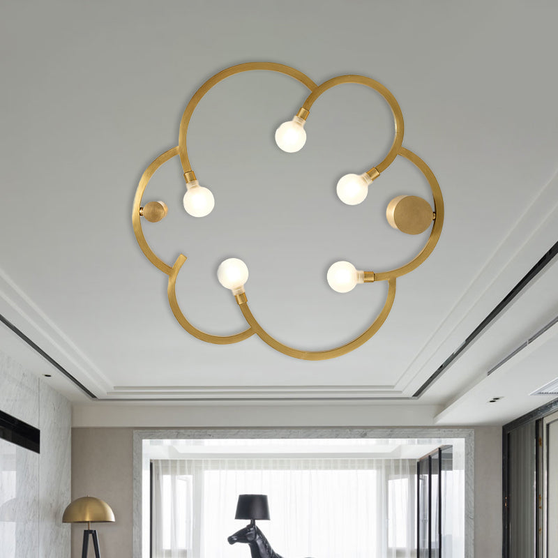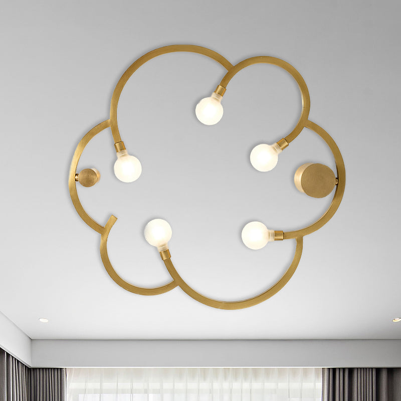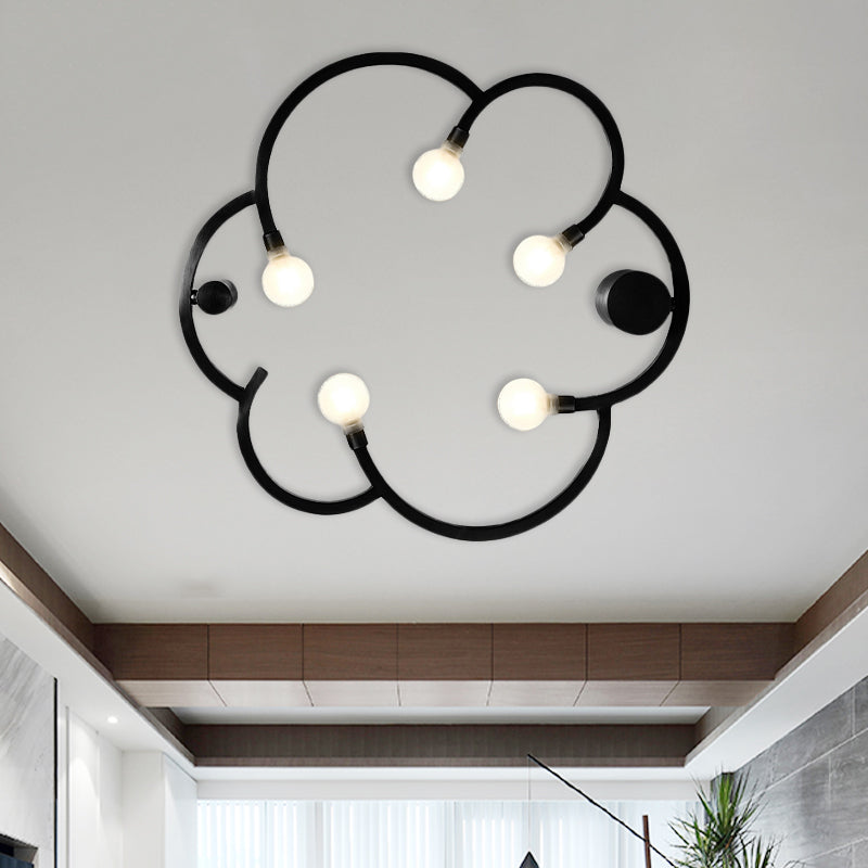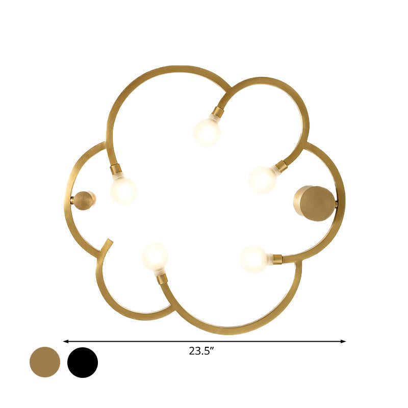 Vintage Flower Cage Iron Semi-Flush Mount Light Fixture for Bedroom - Black/Gold Finish, 5 Bulb Bare Bulb Design
