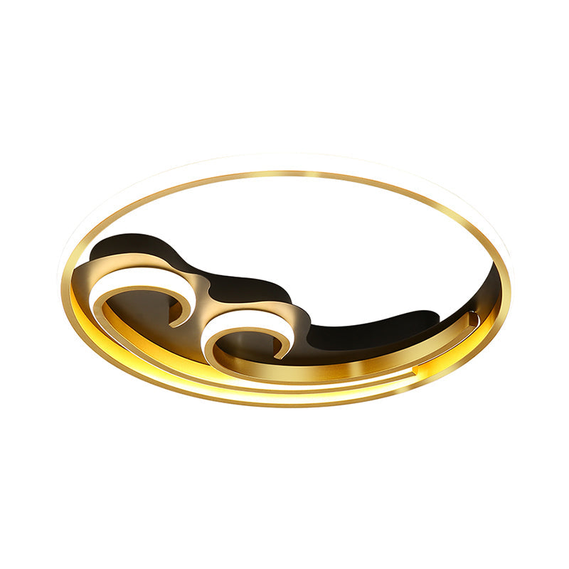 Metallic Led Nordic Flush Light Fixture - Waves Bedroom Semi Mount Lighting In Gold/Black-Gold
