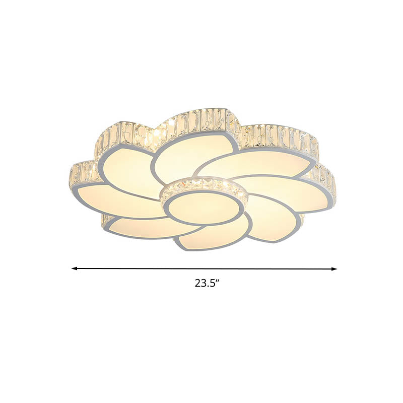 Contemporary Crystal Floral Led Flush Light For Bedroom - 23.5’/31.5’/39’ White 3 Colors