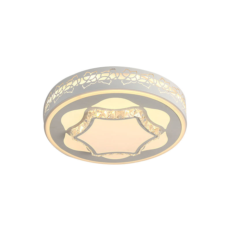 Contemporary White LED Flush Mount Ceiling Light with Remote Control Dimming - Floral Pattern - 3 Color Options