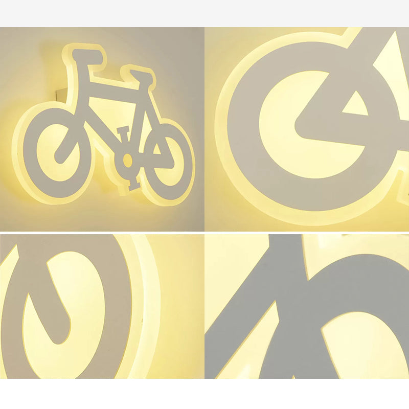 White Led Wall Sconce For Childs Bedroom: Contemporary Creative Acrylic Design / Warm Bicycle
