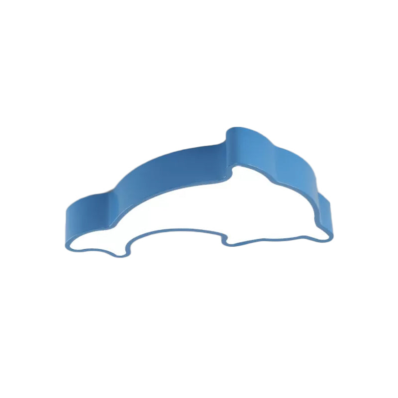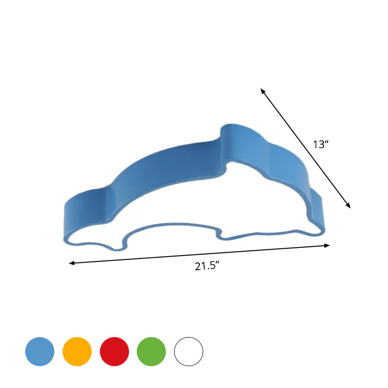 Dolphin Led Ceiling Light For Childrens Bedroom - White/Red/Yellow Acrylic Flush Mount Fixture Blue
