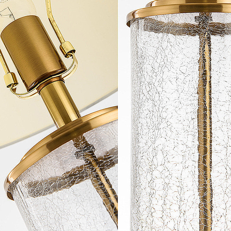 Classic White Fabric 1-Light Night Table Lamp With Clear Crackle Glass Cylinder Base