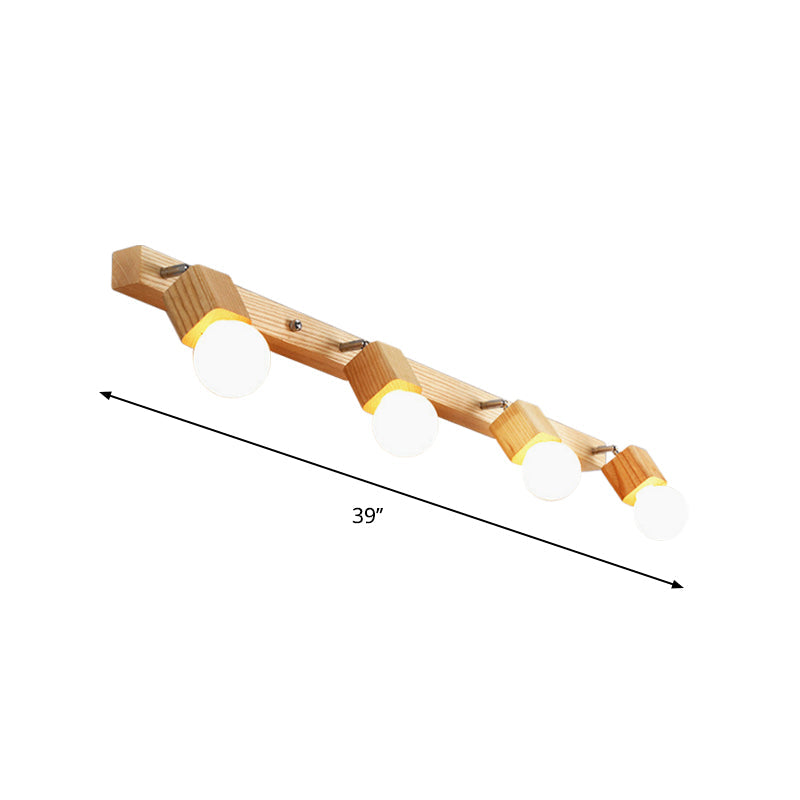 Nordic Wood Bare Bulb Vanity Lamp - Adjustable Beige Wall Mount Light (2/4/5 Bulb Options)