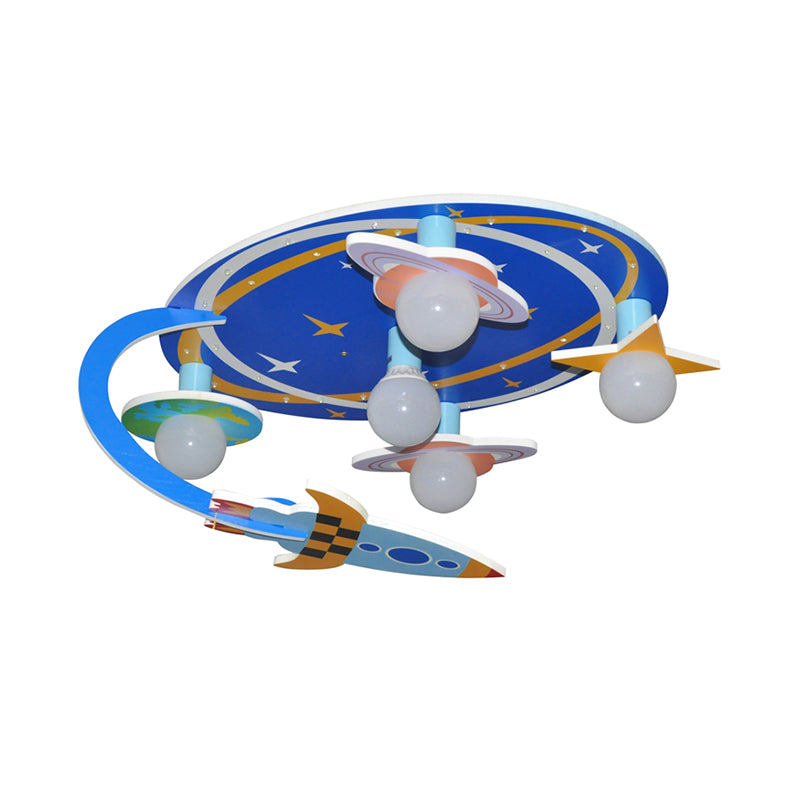 Nordic Wood Starry Sky Semi Flushmount: Bedroom Ceiling Lamp with 5-Light Blue Finish