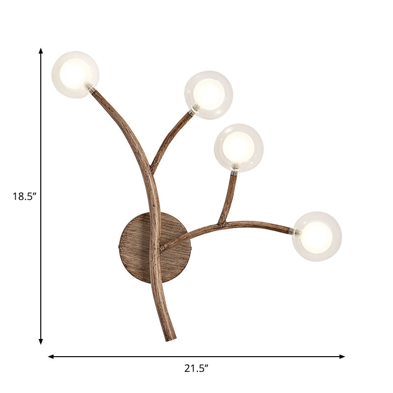 This wall light is inherently stylish and modern, perfect for any space. Whether it be in a bedroom, living room, entryway or kitchen, it will bring the desired atmosphere where ever it is mounted. It is an ideal choice for anyone seeking a unique lighting accent that has high-end design but is still reasonably priced. The combination of classic and industrial elements makes it an eye-catching and chic addition in any home. This wall mount light comes with easy installation instructions and all necessary accessories. Overall, this Wooden Brown Wall Mount Light Twig 3/4 Heads Farmhouse Wall Sconce Lighting with Bubble Clear Glass Shade is an impressive fixture that is sure to turn heads and make any space stand out.